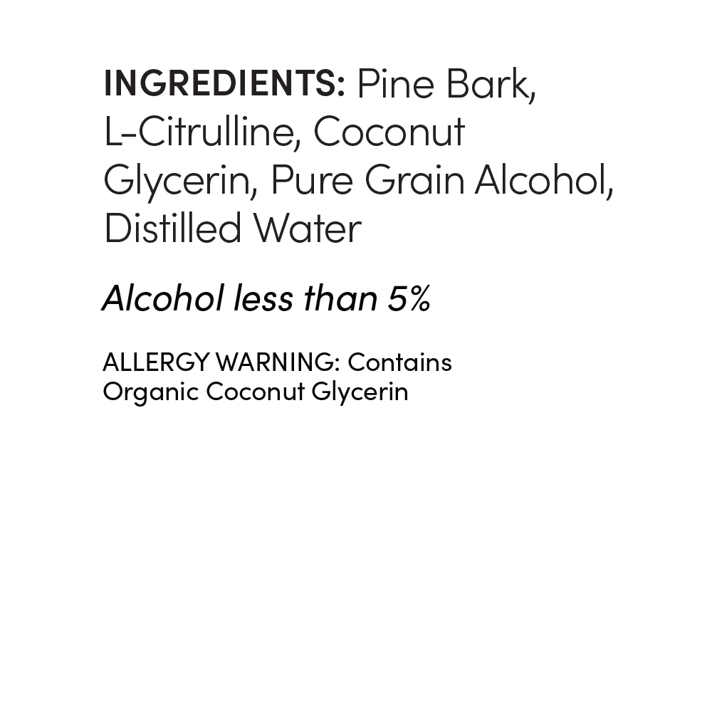 Pine Bark, L-Citrulline, Coconut Glycerin, Pure Grain Alcohol, Distilled Water
