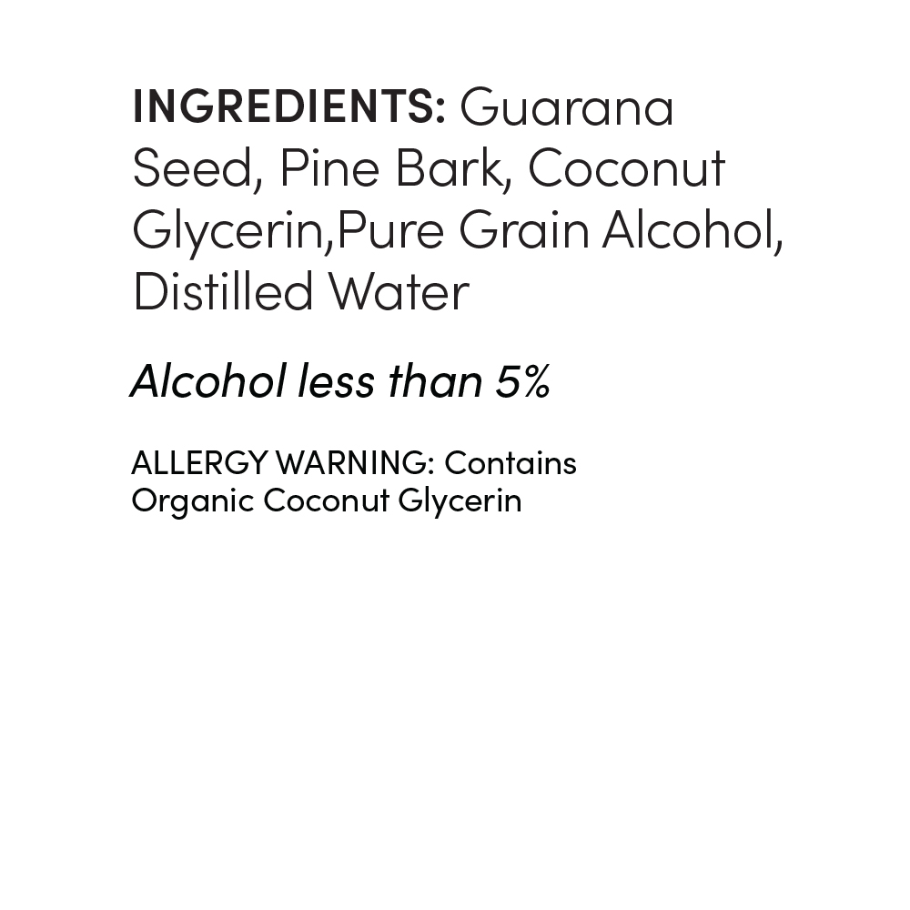 Guarana Seed, Pine Bark, Coconut Glycerin,